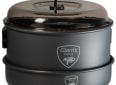 Campingová kuchyňská sada, která obsahuje konvičku, pánev a hrnec s pokličkou. Vše je vyrobeno z lehkého, eloxovaného hliníku a pro snadný transport vše pasuje do sebe.