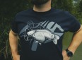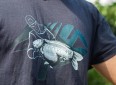 Kvalitní tričko v tmavě modré barvě s designem rybář s úlovkem kapra.