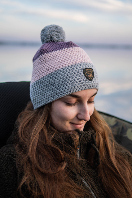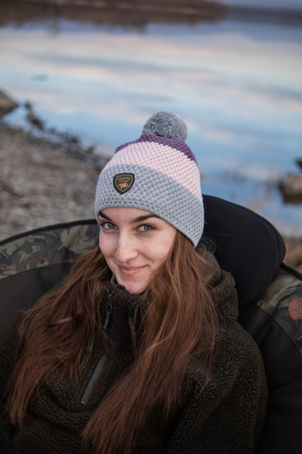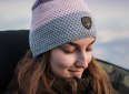 Dámská zimní čepice v tříbarevném provedení s bambulí, která má fleecovou podšívku.