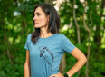 Kvalitní dámské tričko v modré barvě s naším originálním designem vyplouvajícího kapra v přední části.