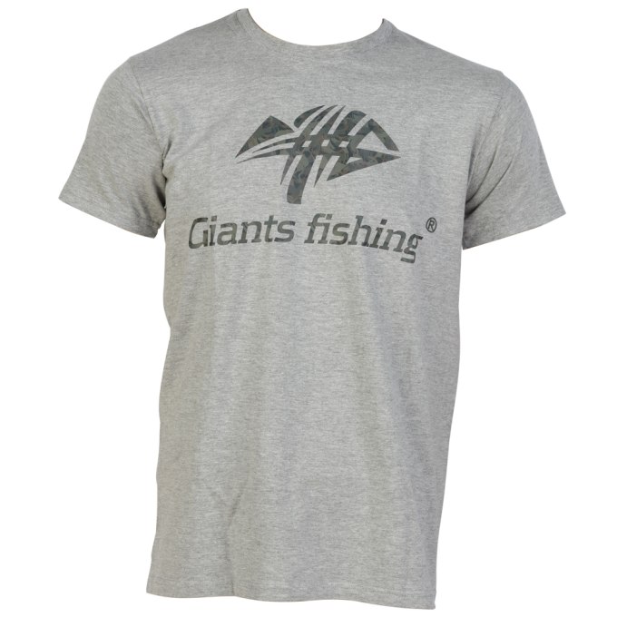 Kvalitní tričko v šedé barvě s maskáčovým logem značky na prsou.