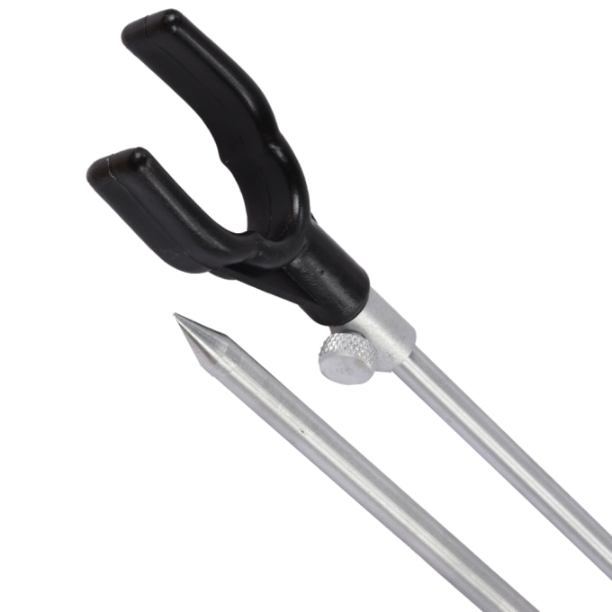 Model „U“ pro držení prutu v zadní části. Vrchní část vidličky je pevně osazena držákem prutu. Požadovanou výšku nastavíte jednoduše pomocí závitu s maticí, která slouží k zafixování výšky rybářské vidličky.
