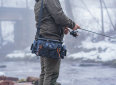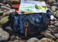 Větší vláčecí taška s popruhem přes rameno, která obsahuje čtyři větší krabičky na nástrahy.